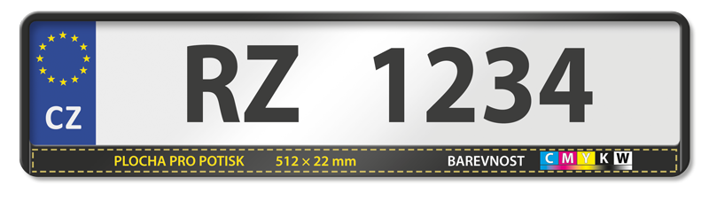 Jako podklad pro potisk podložky pod Registrační Značku (RZ, SPZ) s vlastním grafickým zpracováním bez nutnosti zásahu našeho grafika je přijímáno tiskové PDF dle standardu PDF/X1-a - více informací na www.pdf-x.cz